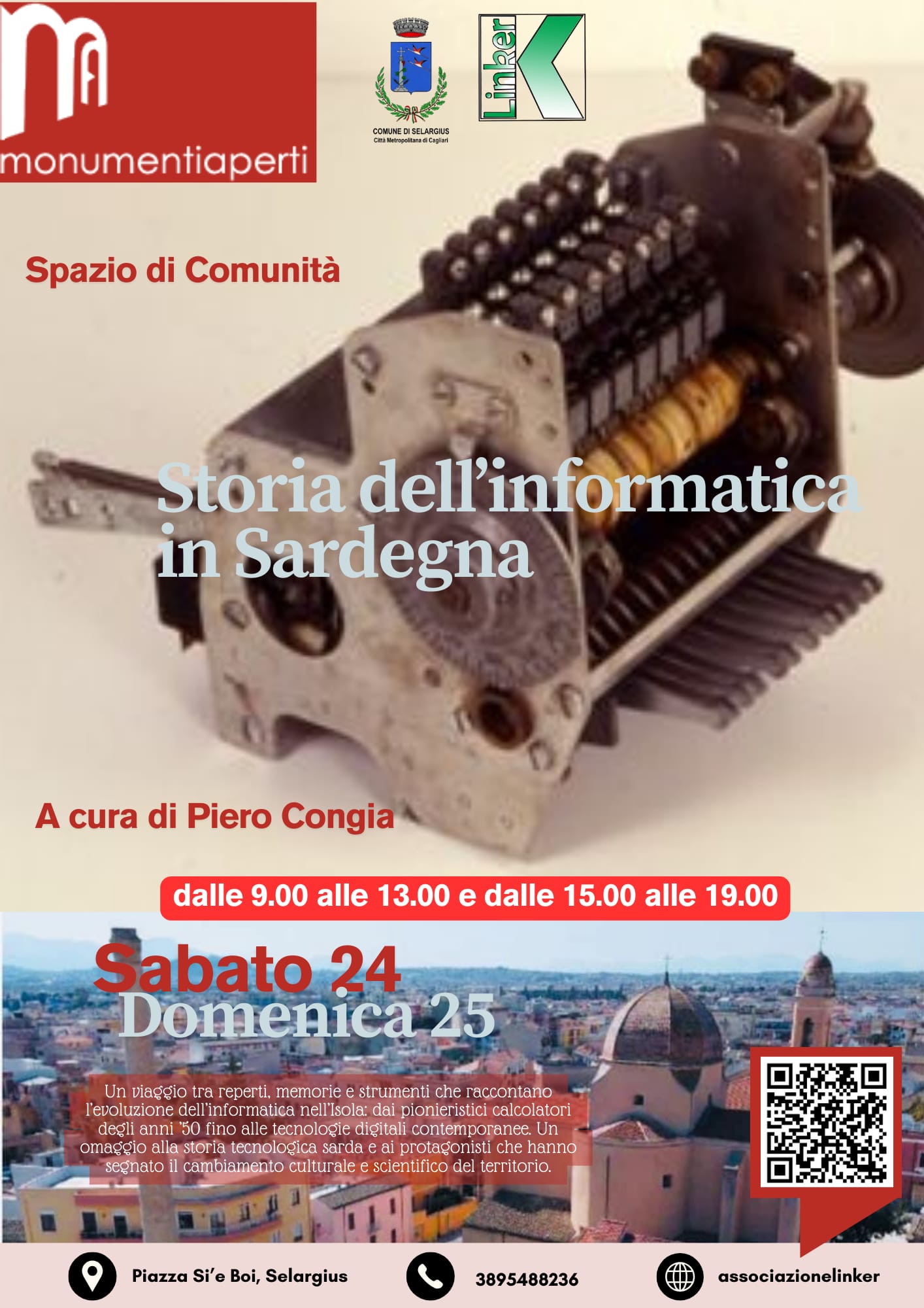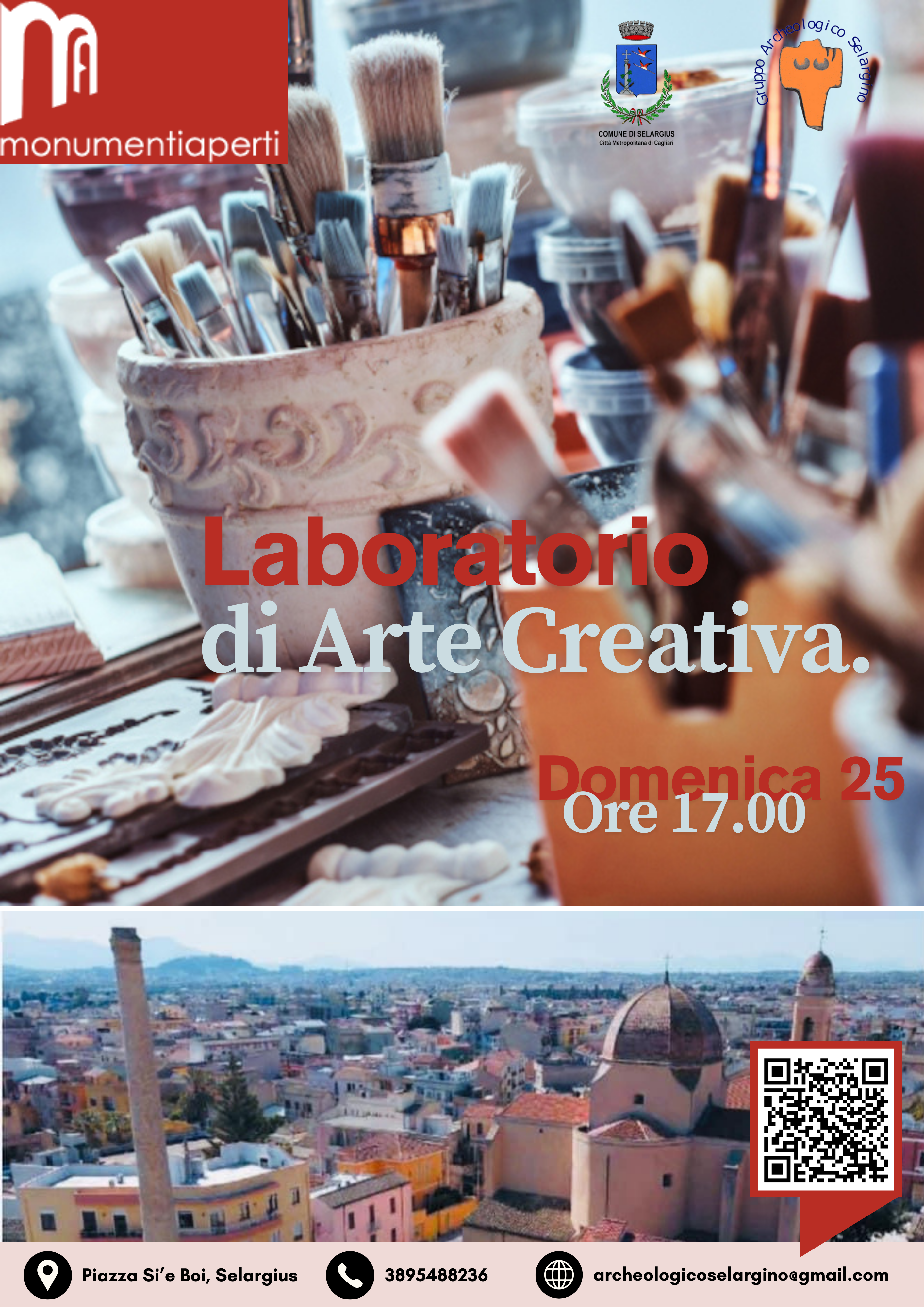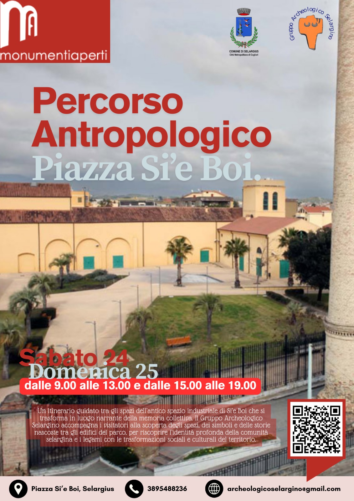 Nello stesso luogo domenica 25 alle 16:00, il *gruppo archeologico selargino* presenta un laboratorio gratuito e partecipativo per i più piccoli e le famiglie, è previsto l'uso di materiali semplici per creare piccoli oggetti che raccontano il territorio. Presso l'ingresso di piazza Si 'e Boi sarà presente un codice QR code, il quale consentirà ai visitatori di poter accedere ai contenuti audio, video e testi che raccontano i Monumenti.