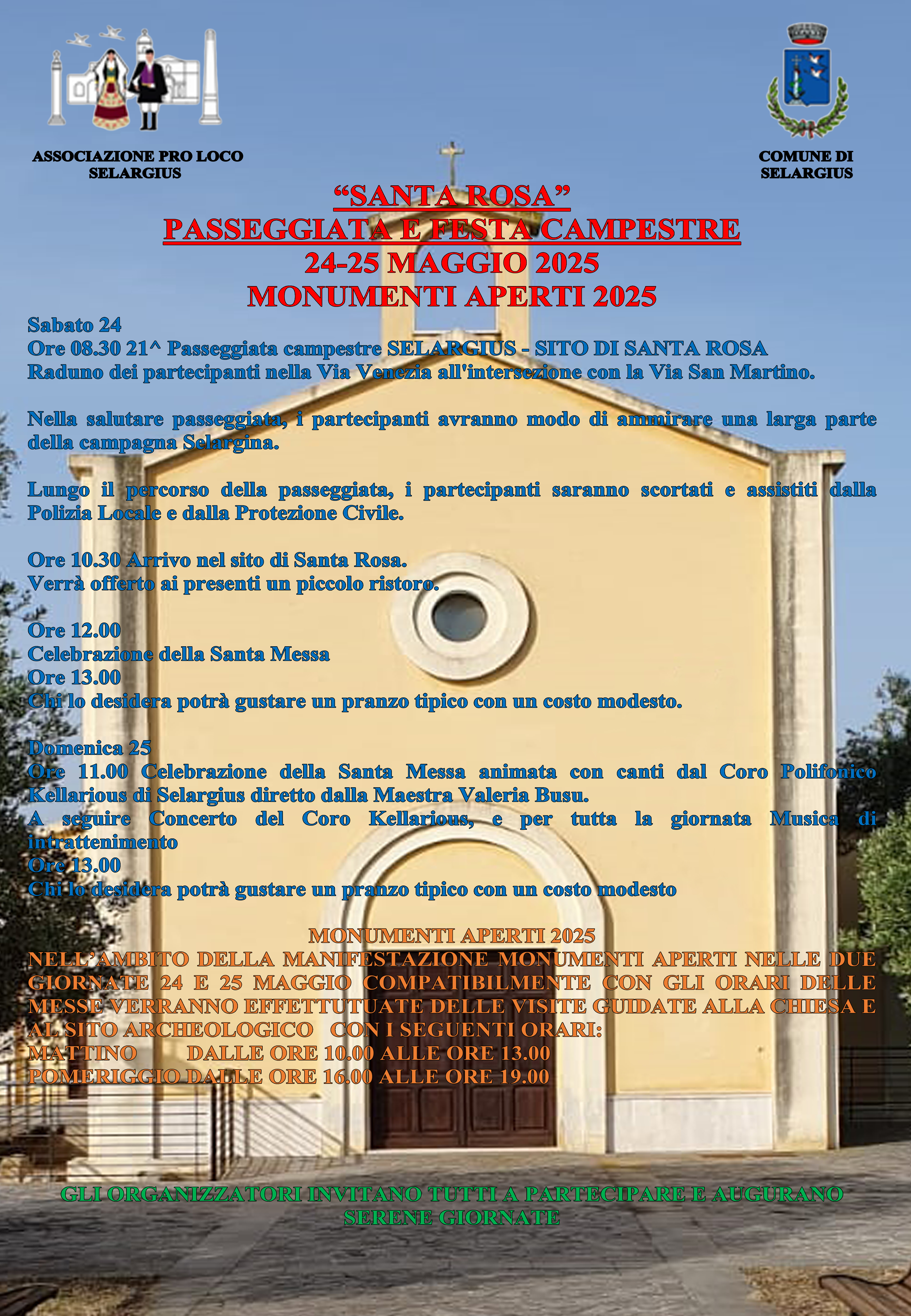 Domenica 25 maggio si terrà, alle ore 11:00, la celebrazione della Santa messa animata dai canti del *Coro Polifonico Kellarious* di Selargius diretto dalla maestra Valeria Busu a seguito il concerto.