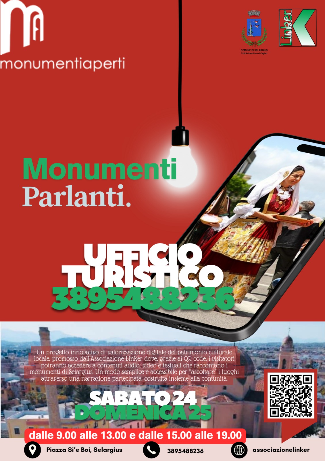 Nello stesso luogo domenica 25 alle 16:00, il *gruppo archeologico selargino* presenta un laboratorio gratuito e partecipativo per i più piccoli e le famiglie, è previsto l'uso di materiali semplici per creare piccoli oggetti che raccontano il territorio. Presso l'ingresso di piazza Si 'e Boi sarà presente un codice QR code, il quale consentirà ai visitatori di poter accedere ai contenuti audio, video e testi che raccontano i Monumenti.