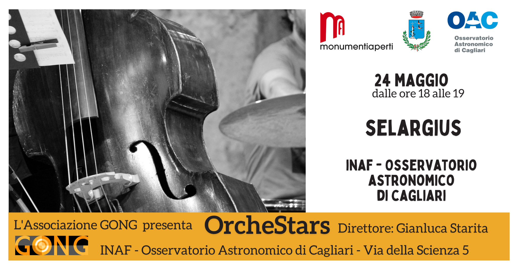 l'associazione *Gong* presenta _ORCHESTARS_ con _*"Un altro modo di far brillar le stelle"*. L'orchestra si esibisce in un concerto per violino e violoncello.