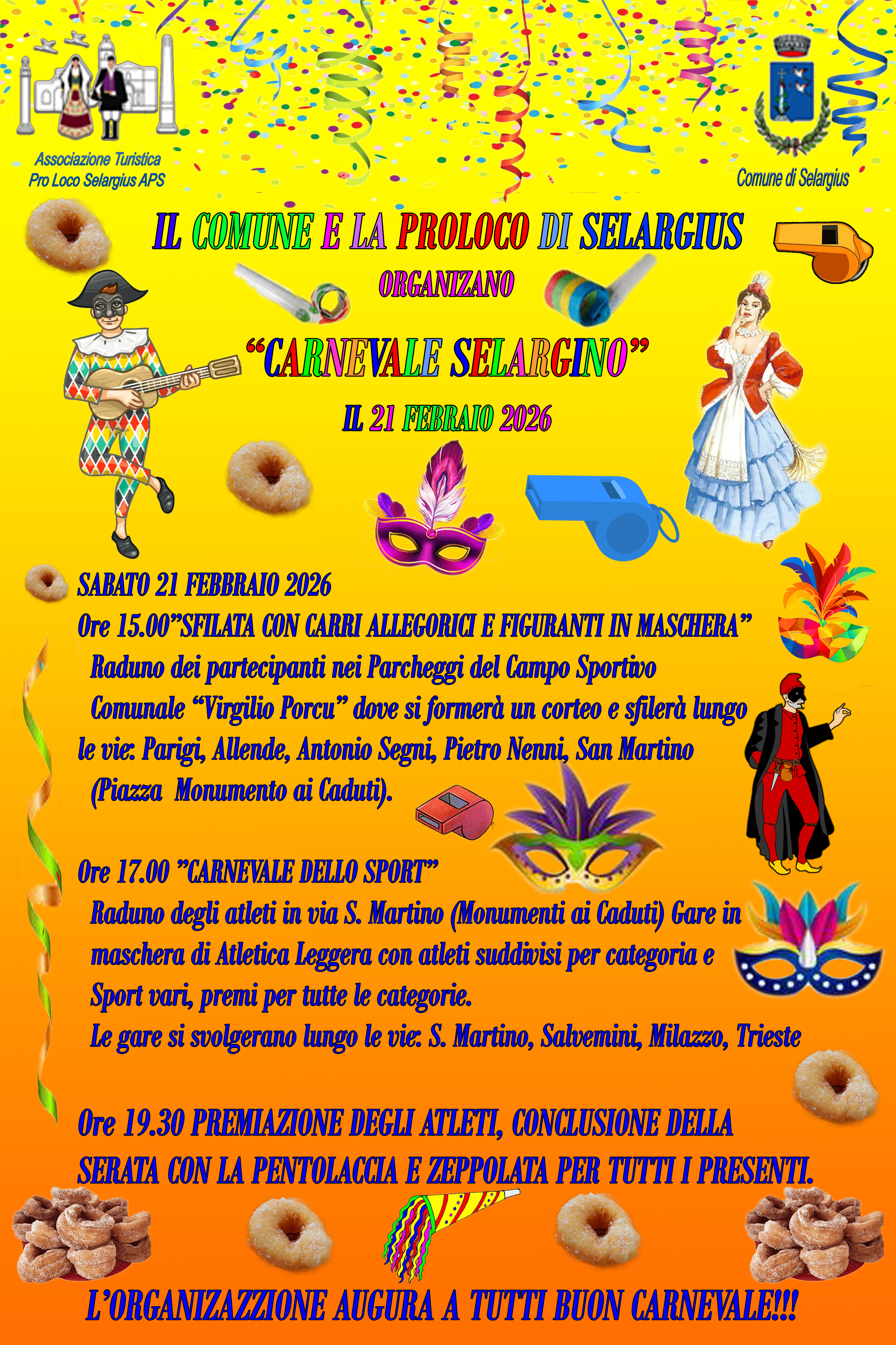 ✨ Vi aspettiamo numerosissimi! Buon Carnevale Selargino 2026! ✨🎉